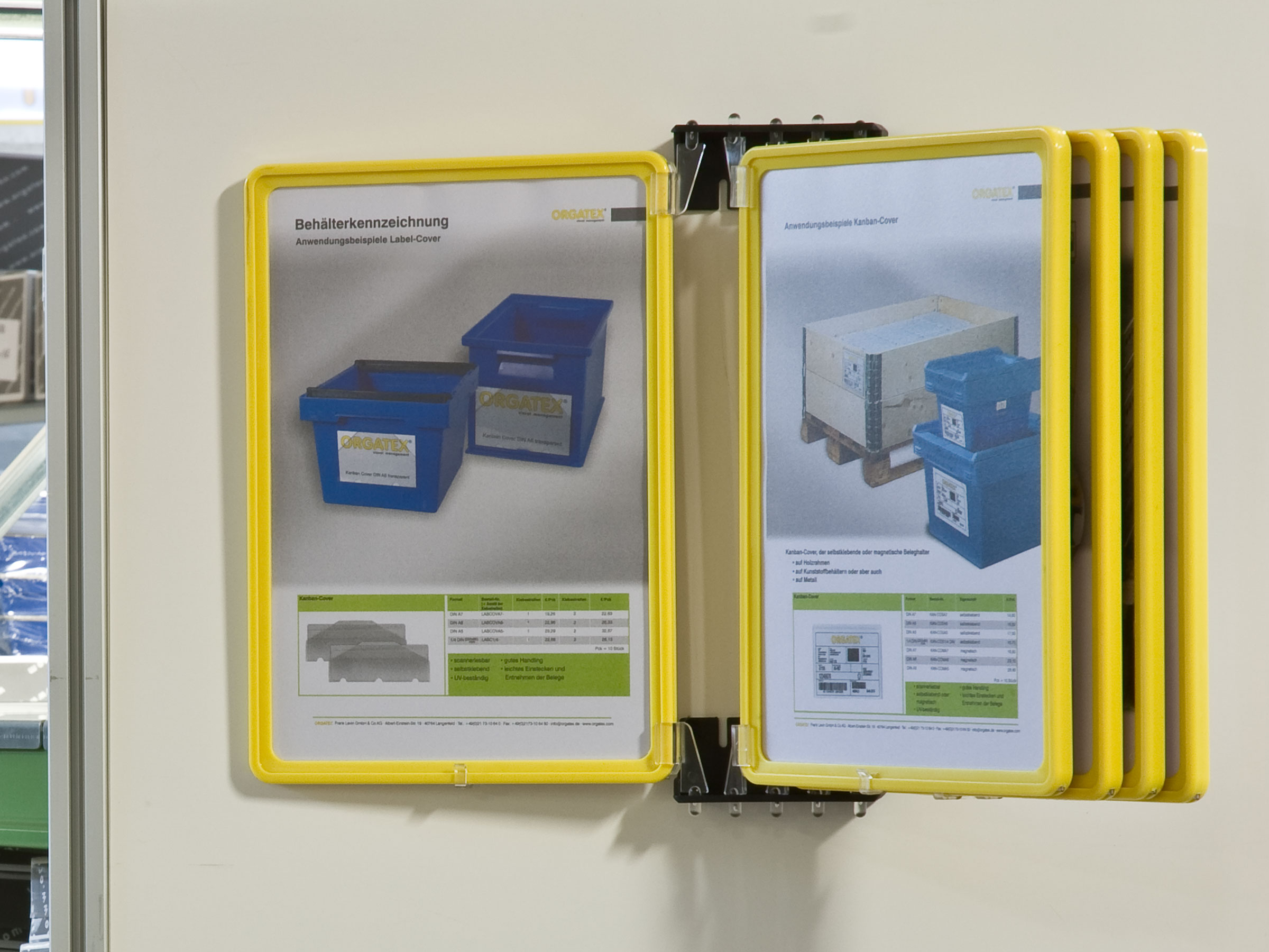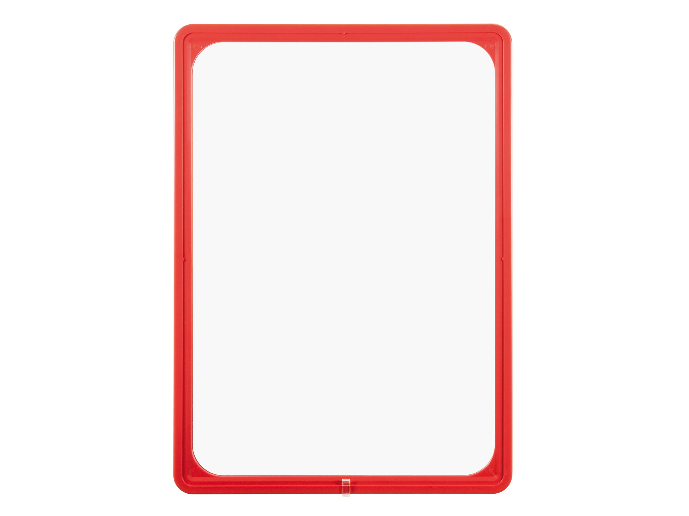 This frame is a robust visualisation tool for identifying shelves and storage spaces. It can be used on both sides. The frame is available in all standard DIN formats and eight different colours. It can be used in both portrait and landscape format. The sturdy plastic frame is suitable for use in industrial areas. The anti-glare PVC protective cover can be read by any common scanner.